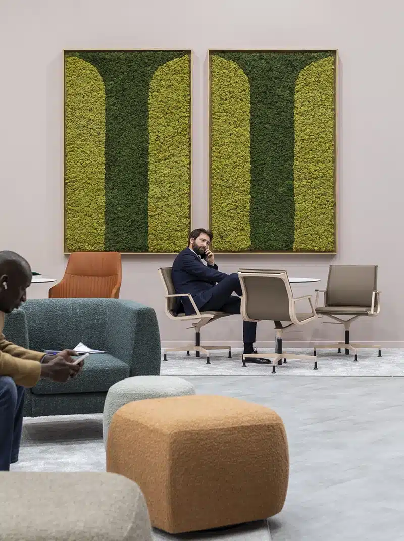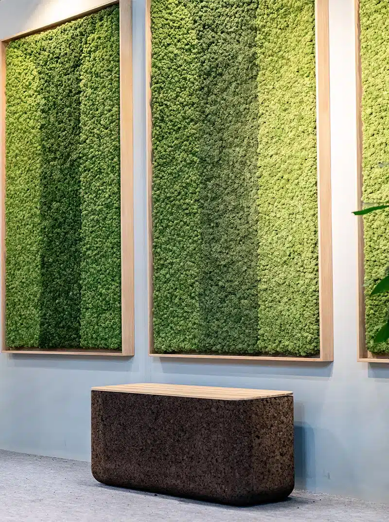 Comme tous les designs Greenmood, Framed contribue au bien-être acoustique. La mousse préservée absorbe naturellement les ondes sonores, aidant à réduire la réverbération et à adoucir le bruit ambiant dans les espaces fréquentés.