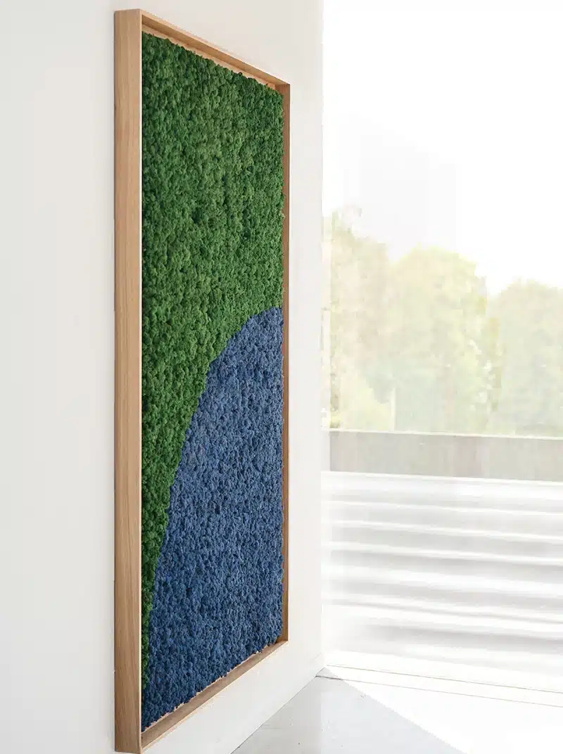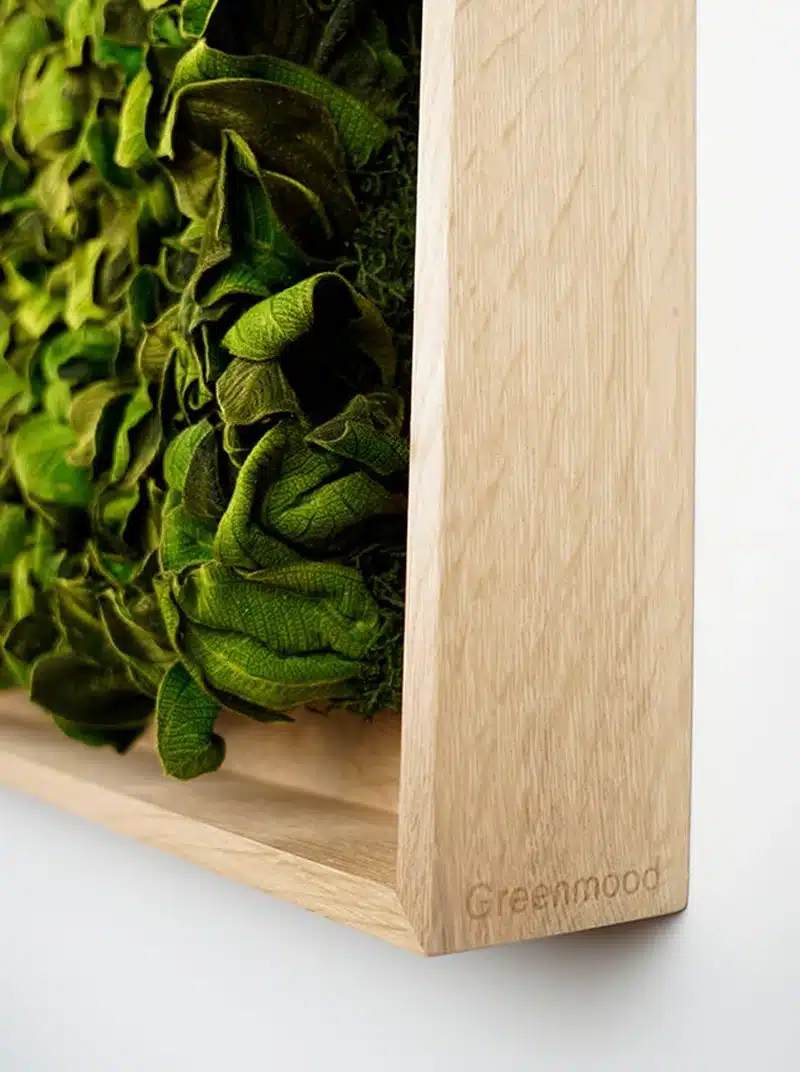 Framed est une collection de panneaux muraux artistiques composés de mousse et feuillages préservés, insérés dans des cadres en chêne massif. Chaque pièce crée un point focal naturel qui marie verdure tactile et design intemporel, idéal pour les environnements résidentiels comme professionnels.