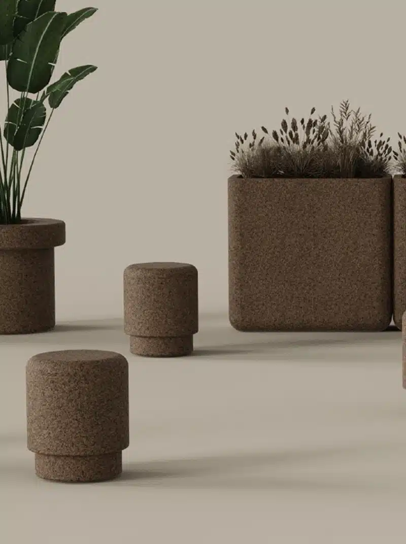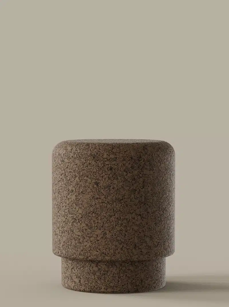 Made from expanded cork, our poufs combine comfort, durability and a raw, tactile texture. Each piece is lightweight, hypoallergenic and naturally fire-resistant, perfect for everyday use in any space.