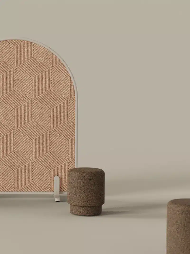 The result is a renewable, biodegradable material with excellent acoustic and thermal properties, offering both sustainability and performance in interior design.