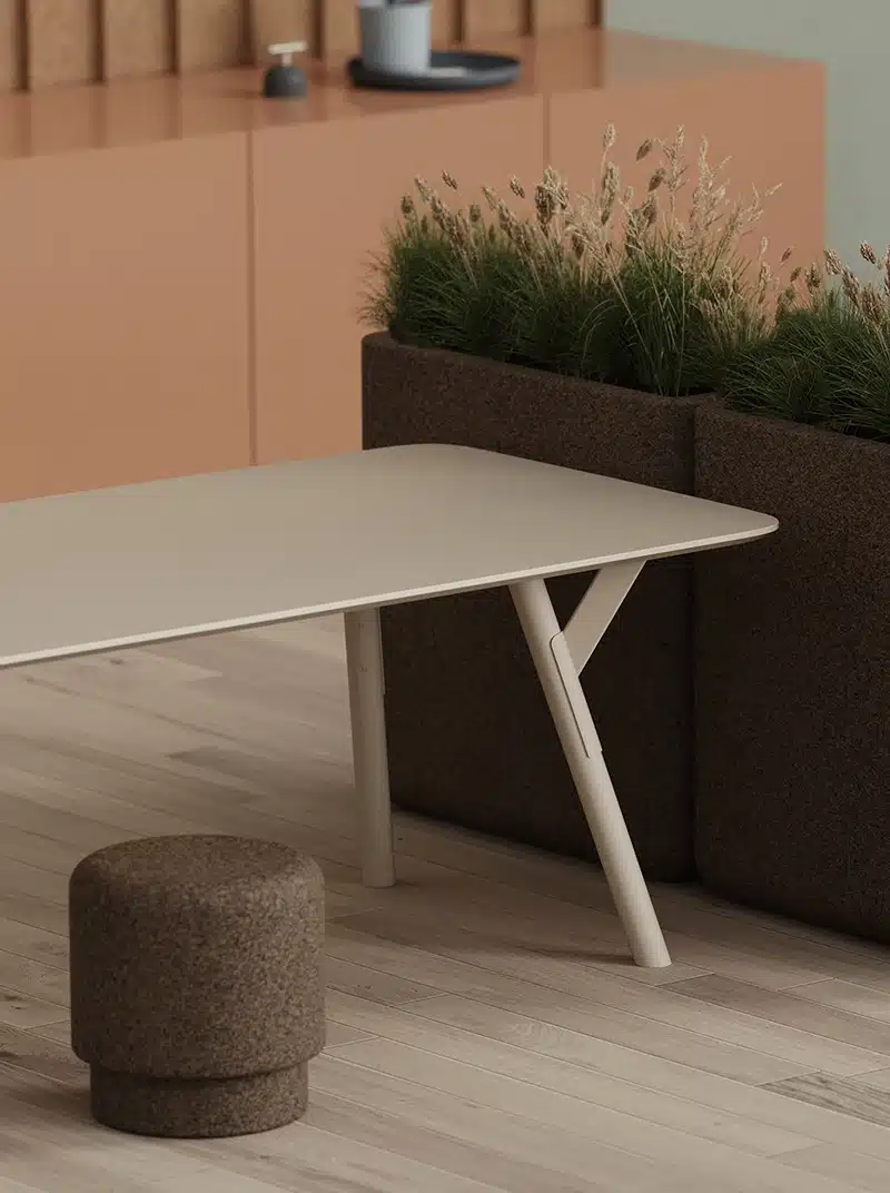 Mario blends graphic design with sustainable thinking. Made from solid expanded cork, it offers a bold silhouette and a generous seat. The cork’s natural resilience, sound-dampening properties and earthy finish make Mario a smart and stylish addition to workspaces and lounges.