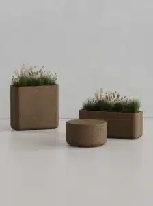 Nos jardinières sont plus que de simples contenants. Ce sont des pièces de design polyvalentes qui allient durabilité et fonctionnalité. Des jardinières modulaires en liège qui se transforment en mobilier aux formes géométriques épurées ou aux finitions sophistiquées, chaque modèle élève l’espace par un équilibre unique entre nature et design.