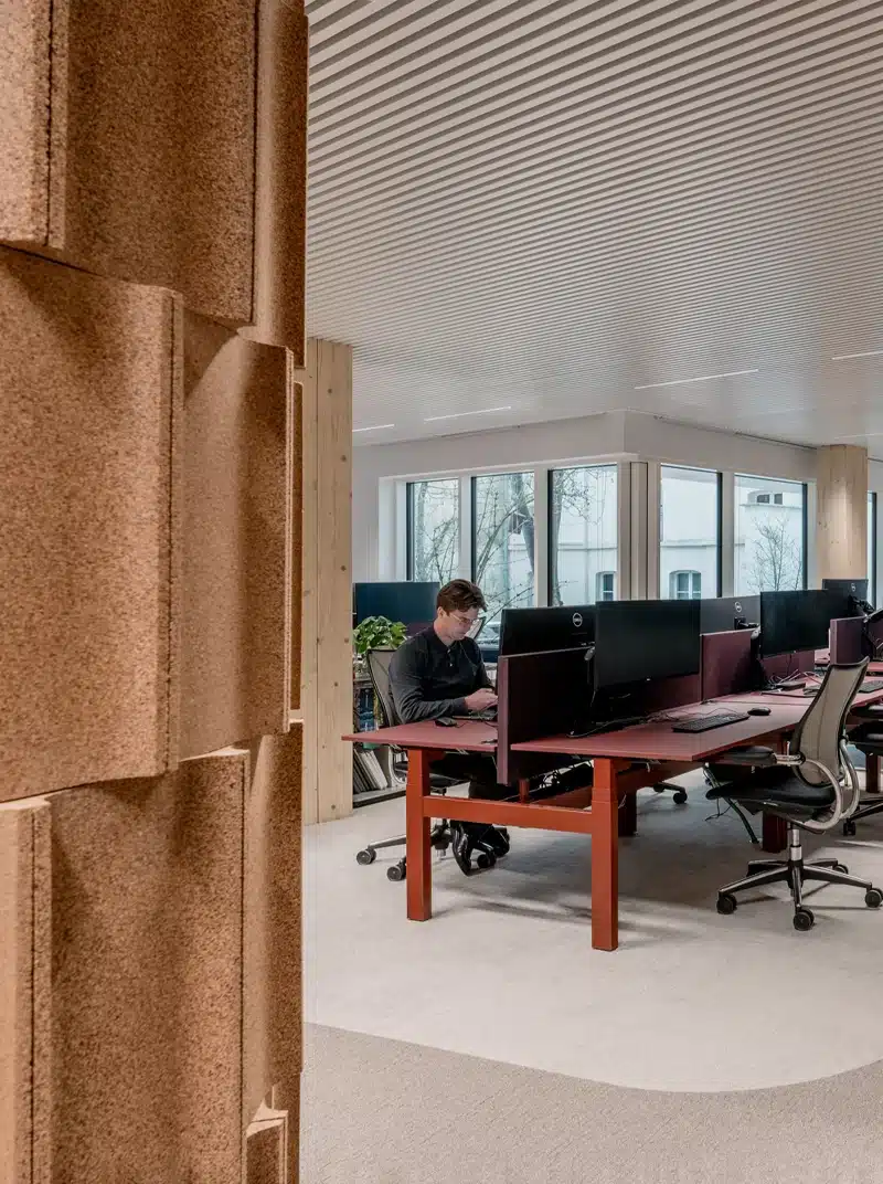 Chaque tuile Parenthese est un module créatif. Disposée en croisillons ou en damier, elle devient une peau dynamique qui se transforme au fil de la lumière. Sa surface naturelle absorbe le son tout en diffusant chaleur et douceur dans l’espace.