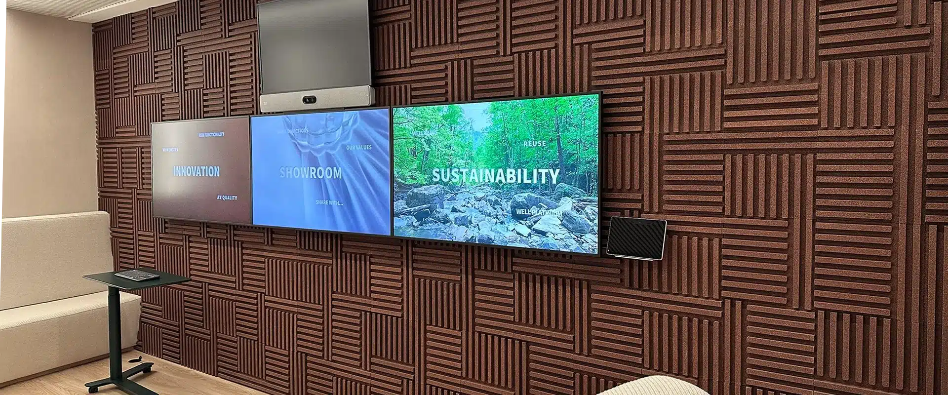 Naast zijn visuele diepte biedt Sillon uitstekende akoestische absorptie dankzij zijn densiteit en micro-textuur. Ethisch geoogst en 100% natuurlijk, kurk vermindert nagalm en brengt tegelijk warmte en biophile karakter in interieurs.