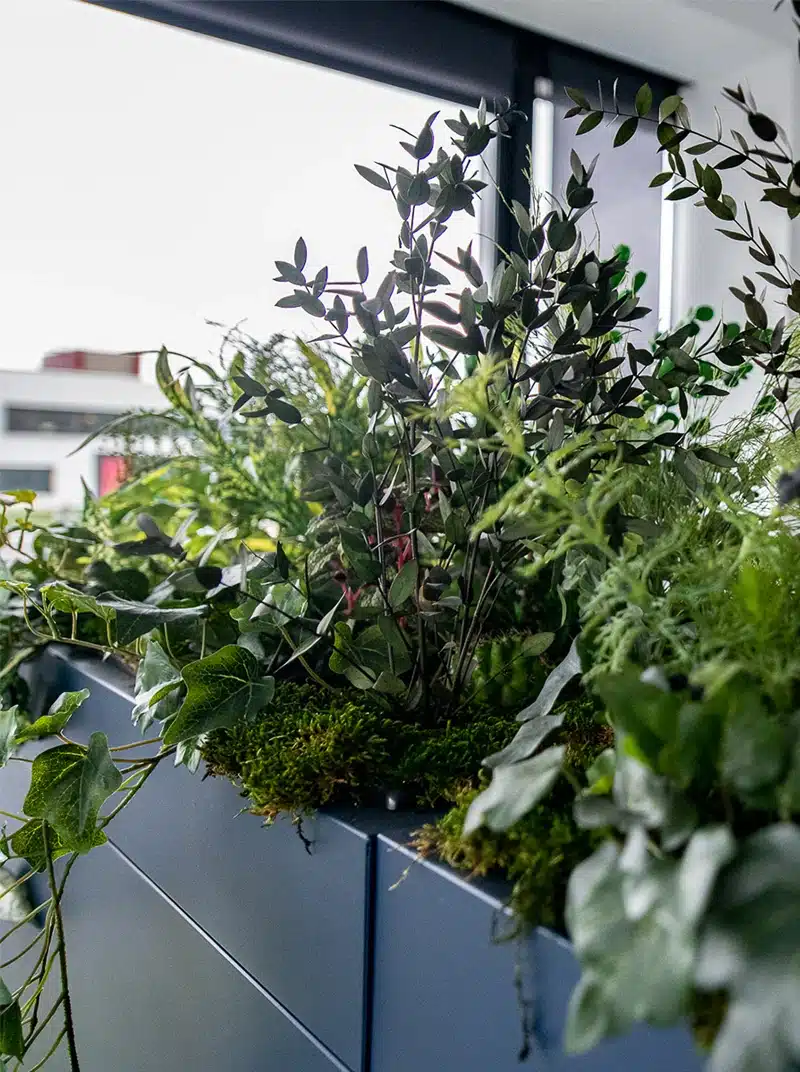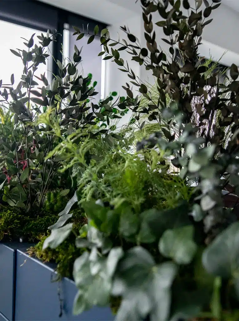 Remplissages de bacs sur mesure Plantes préservées pour halls, bureaux et retail